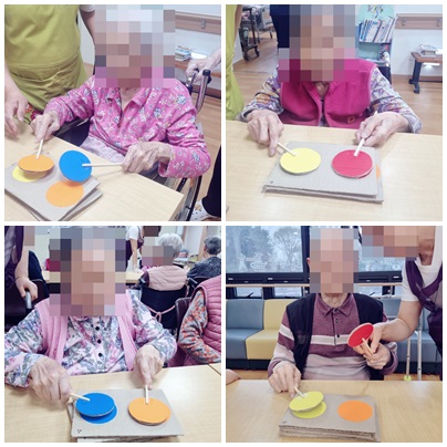 <숲속요양원-인지프로그램-모양과색깔 활동-색깔 막대 뒤집기>